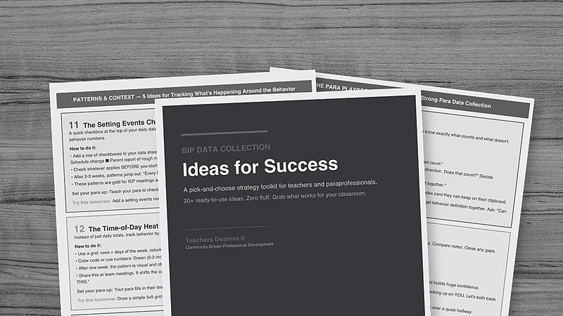 23 pick-and-choose strategies for tracking behavior data without losing your mind. Practical ideas for tallying, rating, spotting patterns, tracking replacement behaviors, and setting your para up for success - each with a "try this tomorrow" action step.